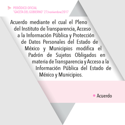 Acuerdo mediante el cual el Pleno del Instituto de Transparencia, Acceso a la Información Pública y Protección de Datos Personales del Estado de México y Municipios modifica el Padrón de Sujetos Obligados en materia de Transparencia y Acceso a la...