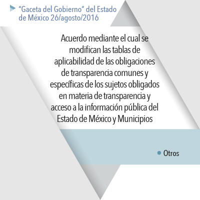 Acuerdo mediante el cual se modifican las tablas de aplicabilidad de las obligaciones de transparencia comunes y específicas de los sujetos obligados en materia de transparencia y acceso a la información pública del Estado de México y Municipios