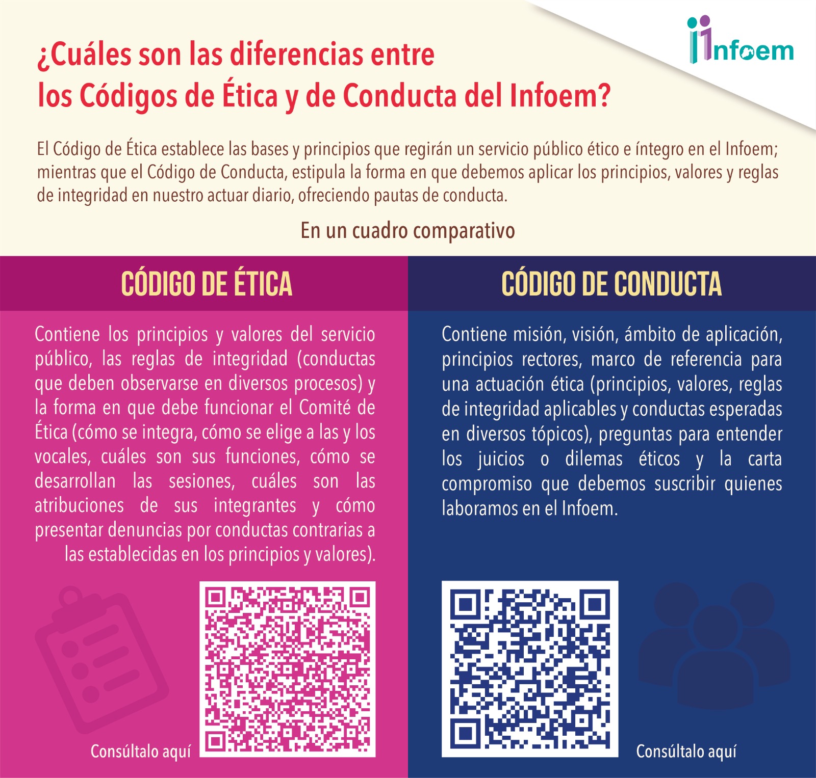 Con la finalidad de fomentar el conocimiento de conceptos básicos en materia de ética, principios y reglas de integridad en el servicio público, y de esa forma disminuir aquellas acciones contrarias a las previstas en la normatividad aplicable, se implementó este espacio en el que podrás encontrar materiales informativos sobre el Comité de Ética del Infoem, cómo se conforma, sus funciones, quienes son las y los vocales, el contenido y finalidades de los Códigos de Ética y de Conducta, las campañas que ha implementado el Comité y otros materiales.